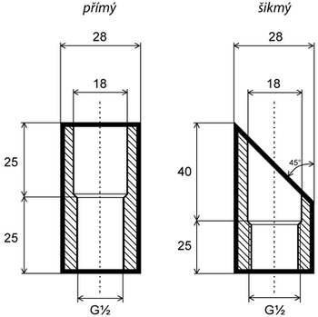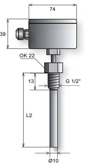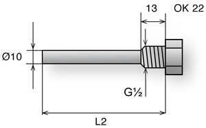 | Stonek | nerez, DIN 1.4301, Ø = 6 mm, délka jímky L2: viz tabulka |
