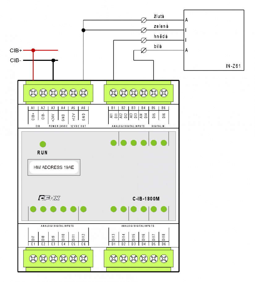 Obr. 1 Připojení vysílače IN-Z61 k modulu C-IB-1800M