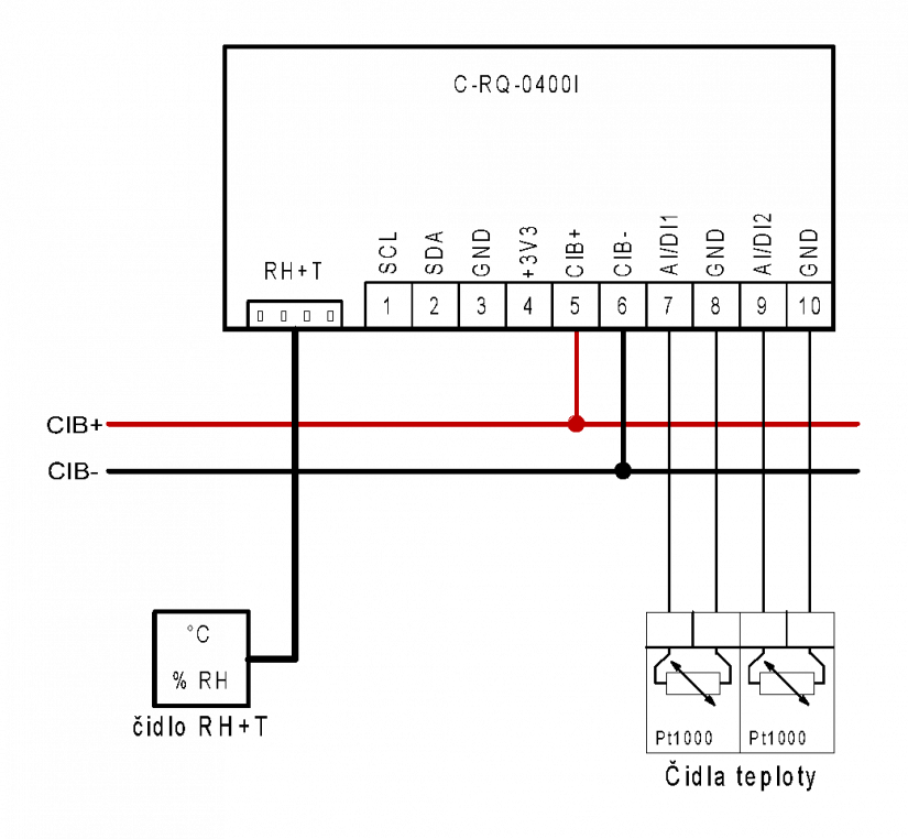 Obr. 1 Příklad zapojení modulu C-RQ-0400I a rozmístění svorek v mechanice modulu