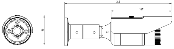IP kamera v provedení Bullet, upevnění na strop s manuálním nastavením a IR přísvitem s dosahem až 20 m.