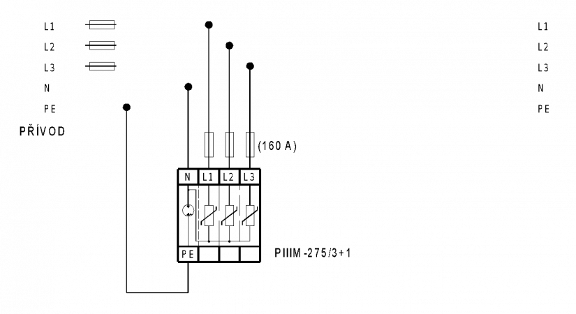 Obr. 1 Příklad zapojení svodiče přepětí PIIIM-275/3+1