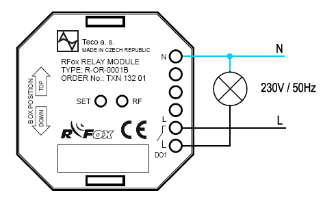 1. Na výstup DO1 je přímo spínáno přívodní síťové napětí (L), které zároveň napájí vnitřní obvody modulu.