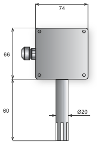 Vlastní čidlo teploty a vlhkosti se nachází v plastové ABS stopce, která je ukončena prachovým filtrem. Elektronika včetně svorkovnice (CIB, 2x AI/DI) je umístěna uvnitř plastové hlavice z polykarbonátu.