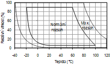 | Rozsah pracovní teploty / relativní vlhkosti snímací části | max. 80°C, viz graf v následující kapitole |