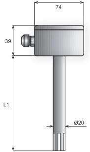 Vlastní čidlo teploty a vlhkosti se nachází v plastové ABS stopce, která je ukončena prachovým filtrem. Elektronika včetně svorkovnice (CIB, 2x AI/DI) je umístěna uvnitř plastové hlavice z polykarbonátu. Součástí snímačů do vzt potrubí je plastový středový držák sloužící k uchycení snímače na stěnu vzduchotechnického kanálu.