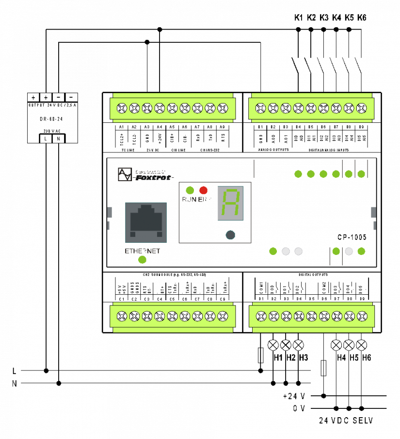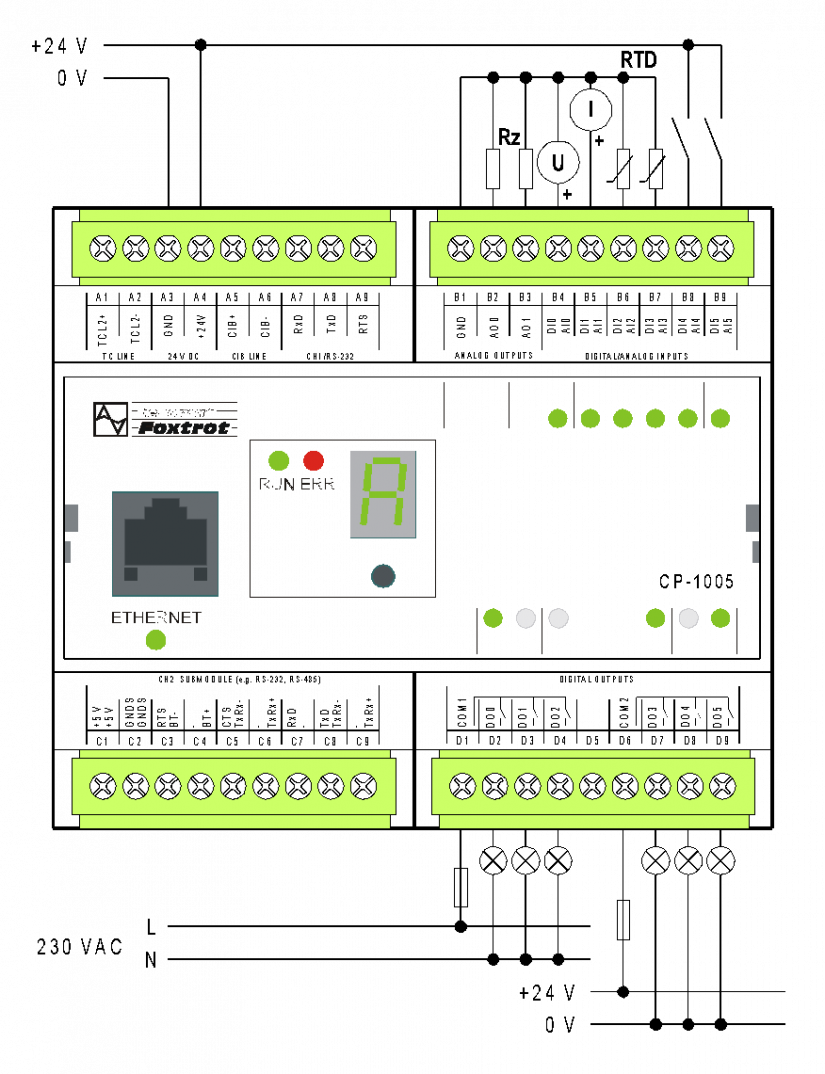Obr. 1 Základní příklad zapojení základního modulu CP-1005