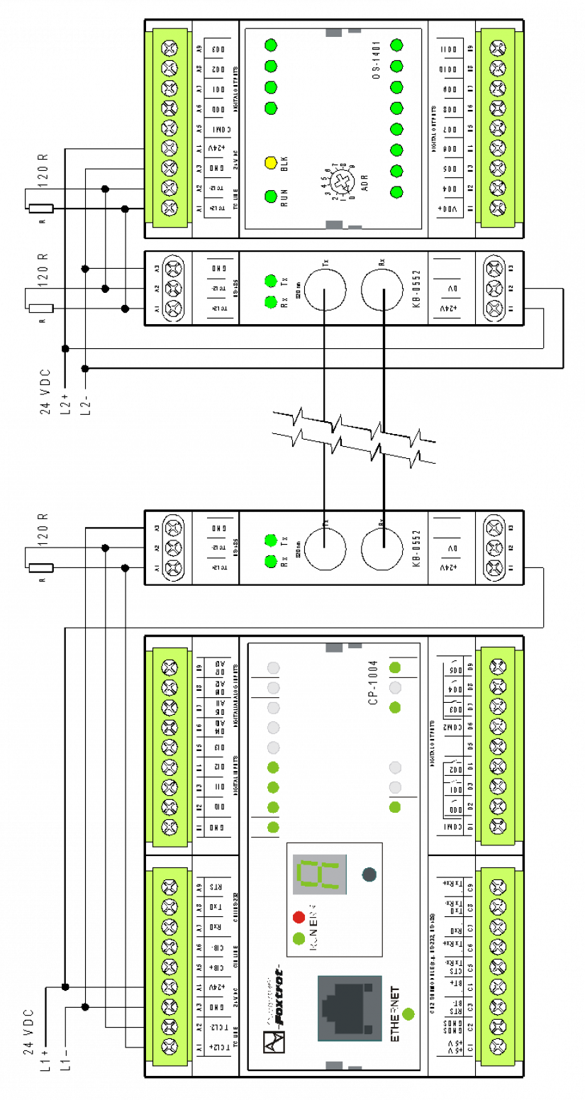 Moduly optického propojení KB-0552 jsou určené pro připojení optických kabelů s optickými konektory typu ST. Modul neobsahuje zakončení metalické sběrnice TCL2 (odpor 120 Ω), takže nemusí být vždy na konci metalické linky. Pokud je na konci metalické linky, pak musí být použit zakončovací člen KB-0290.