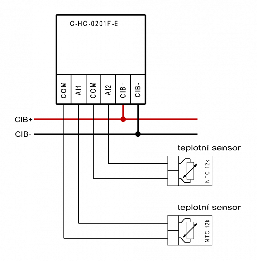 Obr. 1 Příklad zapojení – motorická hlavice CIB pro radiátorové ventily C-HC-0201F-E