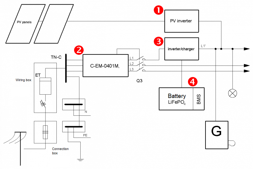 ❹ Bateriové úložiště, LiFePO4 baterie např. 48 VDC, 100 Ah včetně BMS