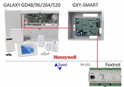 Pro integraci zabezpečovacích ústřednen Galaxy Dimension GD-48, GD-96, GD-264, GD-520 včetně i starších ústředen řady Galaxy a Galaxy G3 je k dispozici podpora FB v programovacím SW Mosaic (přesný seznam ústředen je uveden v dokumentaci TXV 003 74). Systémy Tecomat jsou se zabezpečovacími ústřednami Galaxy propojeny prostřednictvím komunikačního modulu GXY-SMART. Tento modul slouží pro integraci ústředen Galaxy Classic, Galaxy G3 a Galaxy GD se zařízeními třetích stran. Pro komunikaci se používá rozhraní RS-232, komunikační rychlost 115 200 Baud.