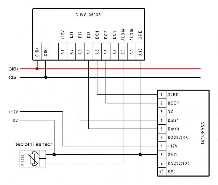 Obr. 1 Příklad připojení snímače SSA-R1000/R1001 k modulu C-WG-0503S
