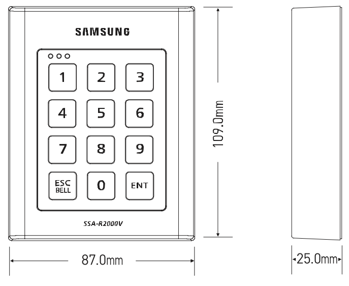 Snímač SSA-R2000V je určen pro čtení bezkontaktních (RFID) identifikátorů dle typu použité technologie Samsung Format 125 kHz (SSA-R2000V) nebo MIFARE (SSA-R2001V) a zadávání PIN kódu pomocí dotykové klávesnice. Snímač je vybaven červenou, oranžovou a zelenou indikační LED a bzučákem.
