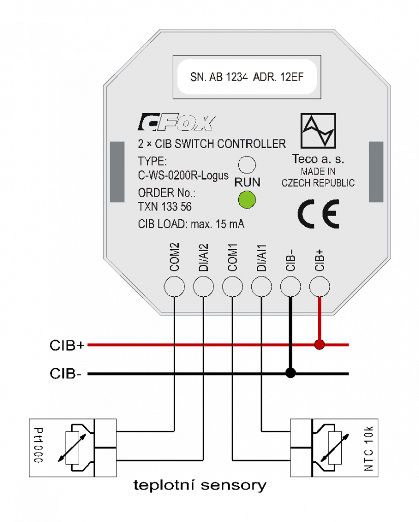 1. Čidla teploty mohou být Pt1000, NI1000,  NTC 12k nebo jiné NTC s odporem do 100 k, délka přívodního kabelu může být až desítky metrů – typické použití podlahové čidlo, použitý kabel např. SYKFY a podobný kabel alespoň 1x2 vodiče průměru min. 0,5 mm.