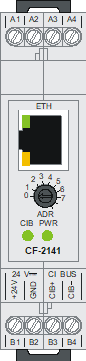 Modul CF-2141 je master CIB sběrnice pro systém Foxtrot 2 (centrální jednotky CP-2xxx), který umožňuje připojit jednu CIB linku (až 32 CIB jednotek). Modul CF-2141 poskytuje interně plnohodnotné napájení CIB linek (obsahuje interní oddělovací členy, zatižitelnost 1A). Vlastní modul je napájen z 24 V DC, odběr modulu z napájecího zdroje bez zatížení výstupu CIB je max. 100 mA, tj. celkový odběr při max. zatížení CIB výstupu je 1,1 A.