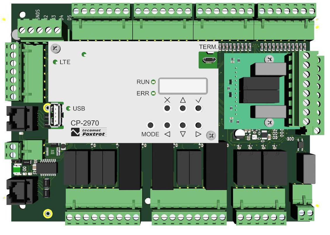 Modul CP-2970 je kompletní řídicí systém řady Foxtrot v provedení určeném pro vestavbu do cílového produktu. Modul je v plném osazení vybaven poměrně velkým počtem vstupů a výstupů včetně speciálních rozhraní tak, aby umožnil optimální konfiguraci pro cílovou aplikaci. Konkrétní osazení a vybavení je řešeno po vzájemné dohodě se zákazníkem.