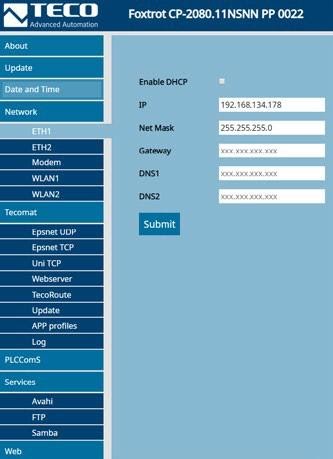 ve firmwaru integrované služby PLCComS, Avahi, Samba, FTP