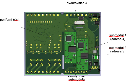 Obr. Nové submoduly s rozhraním sériových portů (viz světleji zelené) se aplikují zasunutím do základní desky zespoda.