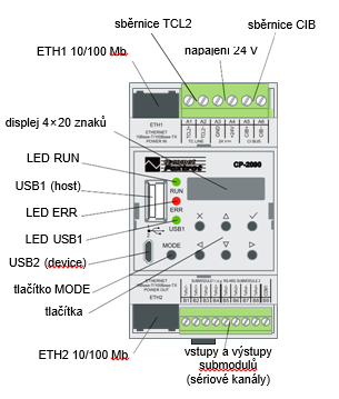 Obr. 1 Rozložení prvků na nejmenším PLC z nové řady Tecomat Foxtrot 2.