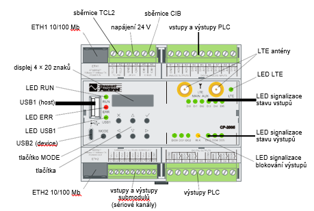 Obr. Rozložení prvků na PLC s osazeným LTE modemem.