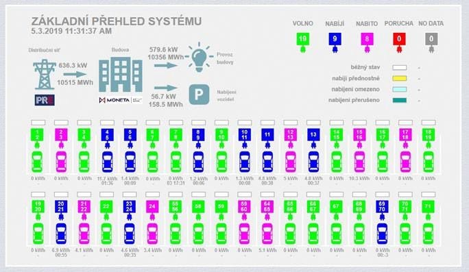 poskytuje historická data a statistiky využití jednotlivých stání a správu jednotlivých uživatelů. Umožňuje operativně měnit limity tak jak se vyvíjí například výše sjednaného rezervovaného příkonu objektu.