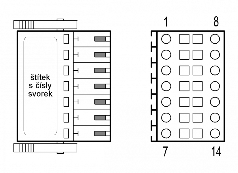 Rozhraní (pozice CH1 až CH4) jsou osazena vyjímatelnými bezšroubovými konektory. Pohled na konektor (při pohledu na systém TEMPO zezadu) je na obr. 2. Podrobnější parametry konektorů jsou uvedeny v kapitole 12.1.