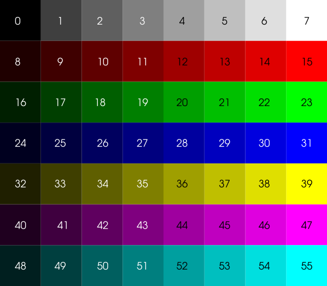 Zvolená barva (hodnota 0 – 55) vychází z palety Obr. 1.