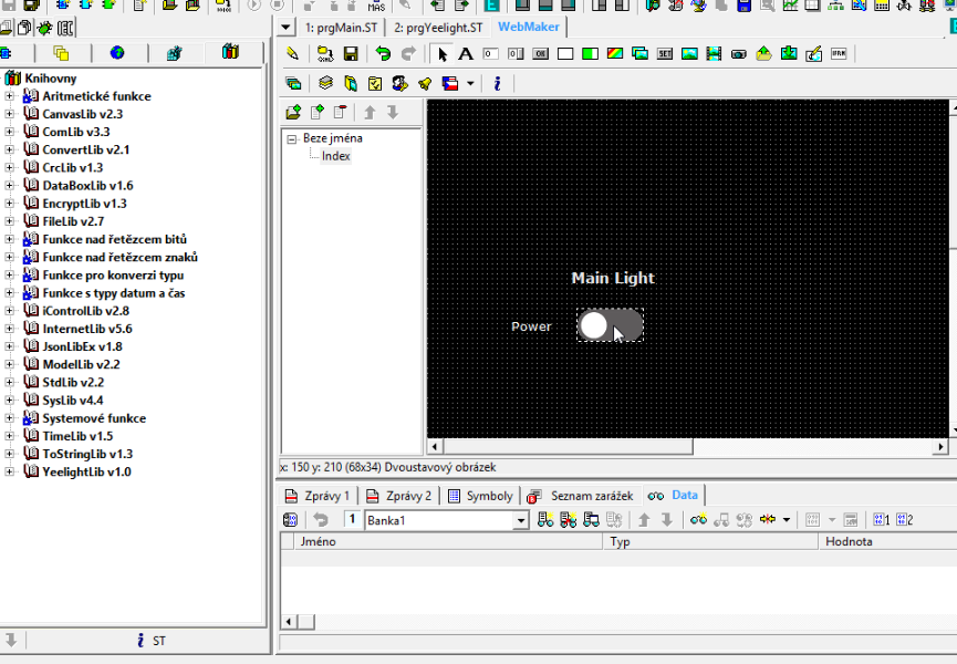 Pomocí knihovny YeelightLib je možné řídit až 16 takových zařízení definovaných strukturou T_YEELIGHT_UNIT. Ve formě seznamu T_YEELIGHT_UNIT_LIST se tyto deklarace v aplikačním programu předávají funkčnímu bloku fbYeelightControl, který je hlavním a jediným funkčním blokem v knihovně YeelightLib. Ve výše uvedeném příkladu je tedy patrné, že pro inicializaci jednotek v seznamu stačí zapsat IP adresy koncových zařízení a nastavit v řídicí struktuře příznak enabled na hodnotu true.