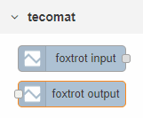 Princip funkce nástroje Node-RED je založen na toku dat mezi funkčními uzly, kde každý uzel vykonává specifickou funkci. Díky internetové komunitě sdružené kolem Node RED je k dispozici široká škála funkčních bloků dostupných přes integrovanou paletu. Vybírat lze z bloků realizujících nejrůznější funkce z IoT světa. Funkce lze definovat i přímo pomocí Javascriptu. Zvyšující se obliba tohoto nástroje vedla firmu Teco a.s. k vývoji vlastní sady funkčních bloků, které budou dostupné přes oficiální paletu Node-RED a které systém Foxtrot umožní integrovat. Stačí v paletovém vyhledávači zadat název „foxtrot“ a balíček je ihned nabídnut k instalaci (plný název balíčku je node-red-contrib-foxtrotnode). Balíček pak nabízí dva typy funkčních uzlů – foxtrot input (poskytuje data z PLC do Node RED) a foxtrot output (umožnuje zapisovat data z Node RED do PLC). Princip komunikace s PLC je založen na použití osvědčeného komunikačního serveru PLCComS. Pro Foxtrot první generace je nutné mít tento PL- CComS ainstalovaný a spuštěný na externím HW, například na stejném na jakém běží Node-RED. Nový Foxtrot 2 má tento server již plně integrován ve firmware a komunikaci je tedy možné směrovat přímo na PLC. Využití PL- CComS serveru přináší možnosti jako třeba sledovat živý obraz vstupů a výstupů Foxtrotu přímo v Node-RED. Použití signálů z Foxtrotu přímo v Node-RED je pak velice snadné. U každé instance funkčního bloku se specifikuje PLCComS server, ke kterému má proběhnout připojení, a z nabídnutého seznamu publikovaných proměnných PLC se vybere ta, kterou má daný uzel reprezentovat.