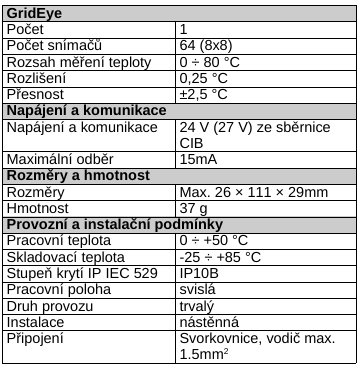 V příkladu byl použit modul C-IF-6400R vybavený senzorem Grid-EYE, jedná se o 64 přesných tepelných senzorů uspořádaných v matici 8x8. Poskytuje data teplotní mapy v pozorovacím úhlu 60 stupňů, horizontálně i vertikálně. Umožňuje měření 1x nebo 10x na sekundu. Konfigurace se provádí ve vývojovém prostředí Mosaic, přesněji v nástroji I/O Configurator. Modul předává informace ze senzoru pomocí 3 parametrů – INDEX, REF a TEMP. INDEX definuje řádek (1 až 8), REF referenční teplotu a TEMP (8x teplota v desetinách stupně) rozdíl teplot jednotlivých snímačů od referenční teploty REF. K výsledné teplotě segmentu se dopracujeme pomocí vzorce: