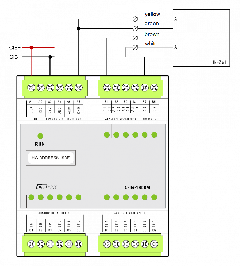 Fig. .1 Wiring the IN-Z61 transmitter to the C-IB-1800M module