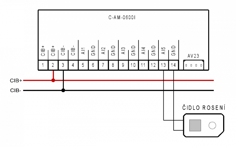 Fig. 1. An example of wiring the SHS dew sensor to the C-AM-0600I module
