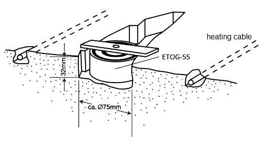 Put a flexible tube (a gooseneck) with the inside diameter of at least 16 mm in the place where the sensor should be located; the ETOG-55 sensor must be at least 5cm from the heating cables, to prevent the heat generated by the cables interfere with the operation of the sensor.