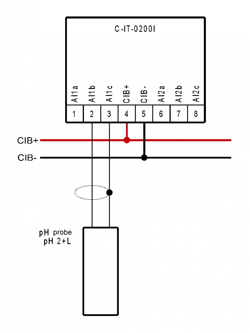 Fig. 1. An example of wiring the probe for measuring the pH to the C-IT-0200I
