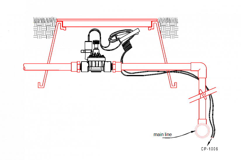 The cable for connecting the valve can be as long as several dozen meters; a suitable type for laying in the ground should be used, and the cross-section should be at least approx. 0.75 mm2 with respect to the voltage drops.