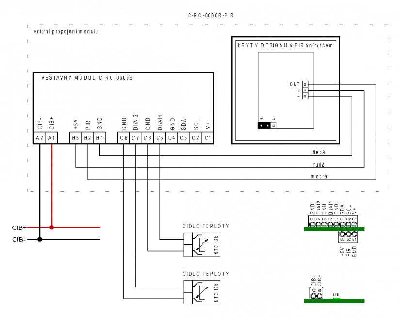 Fig. 2. Connecting the module C-RQ-0600R-PIR including the interior wiring